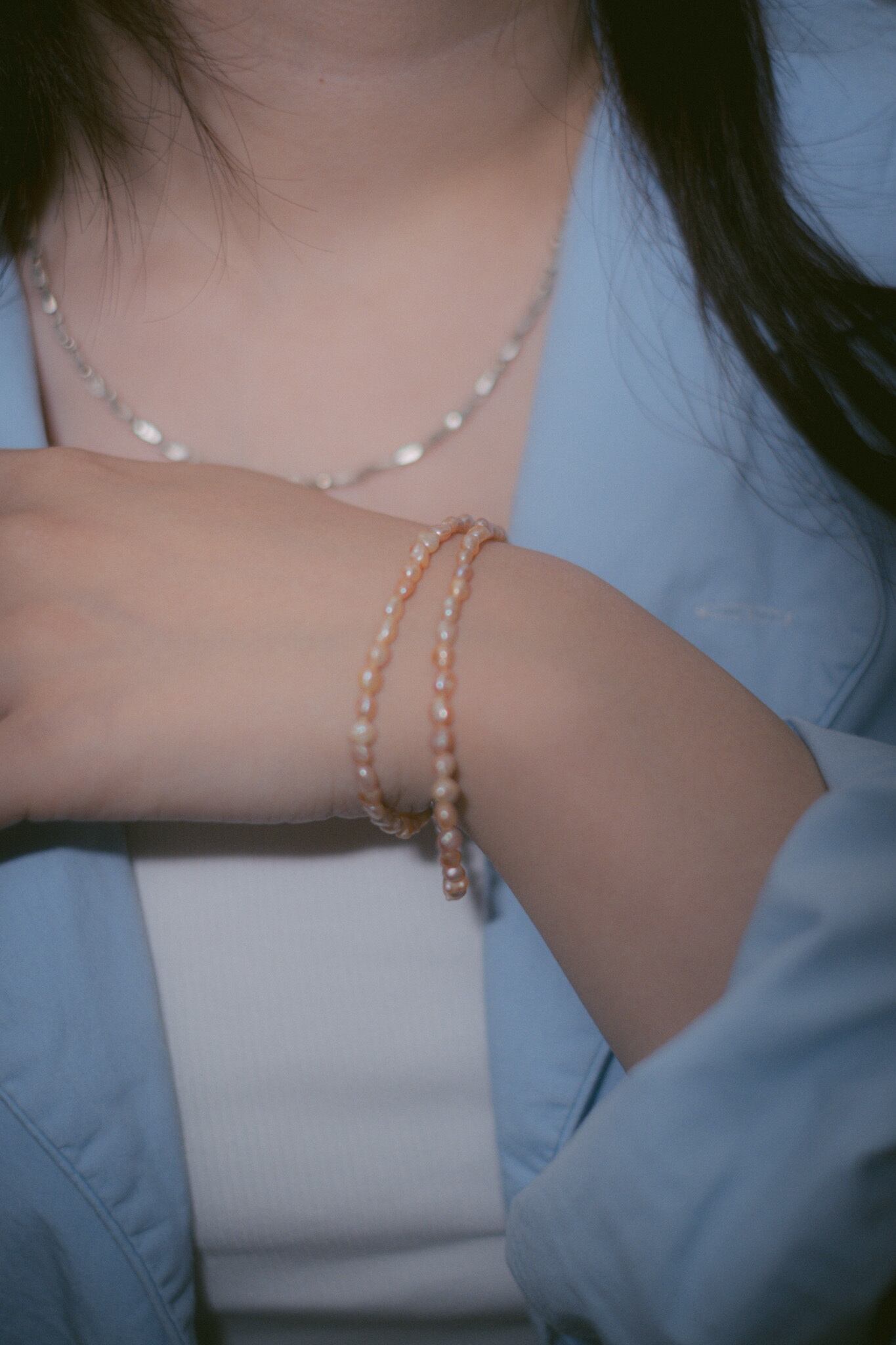 bracelet⦅オレンジピンクバロックパール 2連⦆