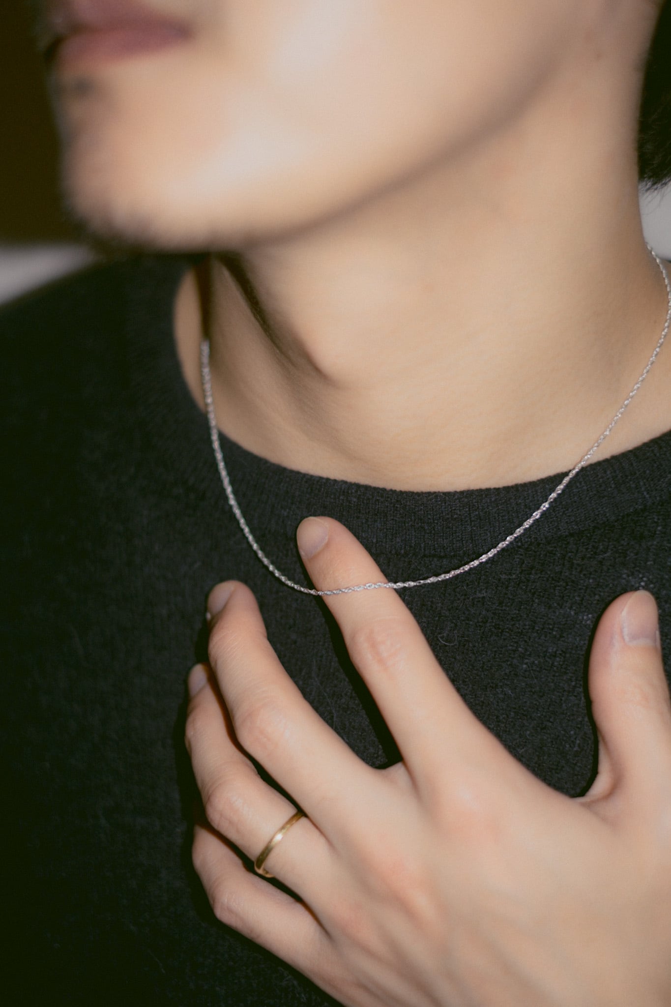 華奢なデザインで主張しすぎず、華美になりすぎないシンプルなチェーン。