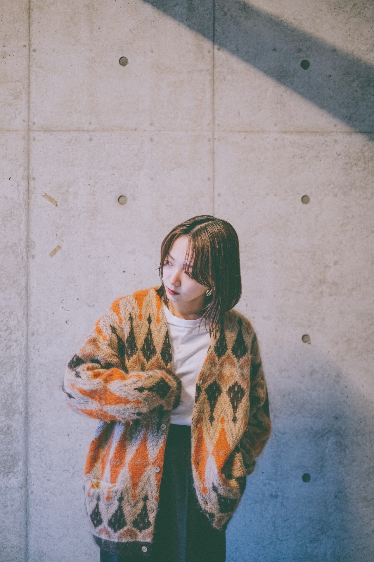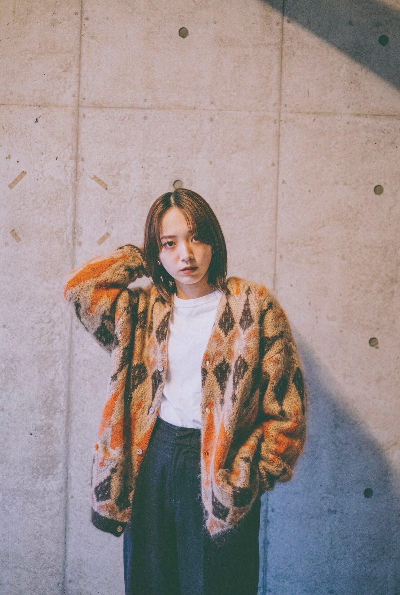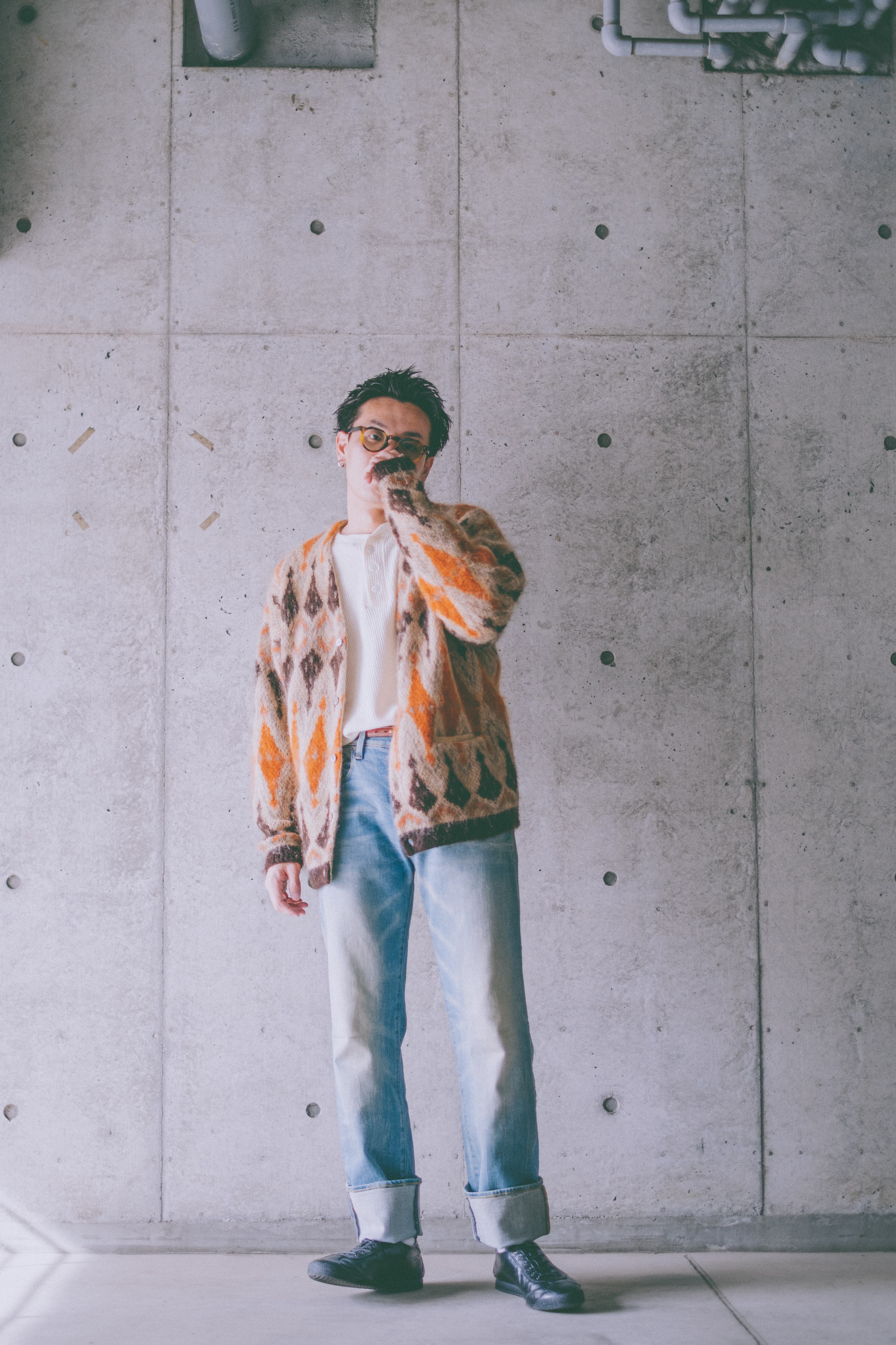 このカーディガンは僕もかおこちゃんも気に入っていたもので、モヘアライクのニットと柄と配色が良くクオリティの高い1着だと思っています。