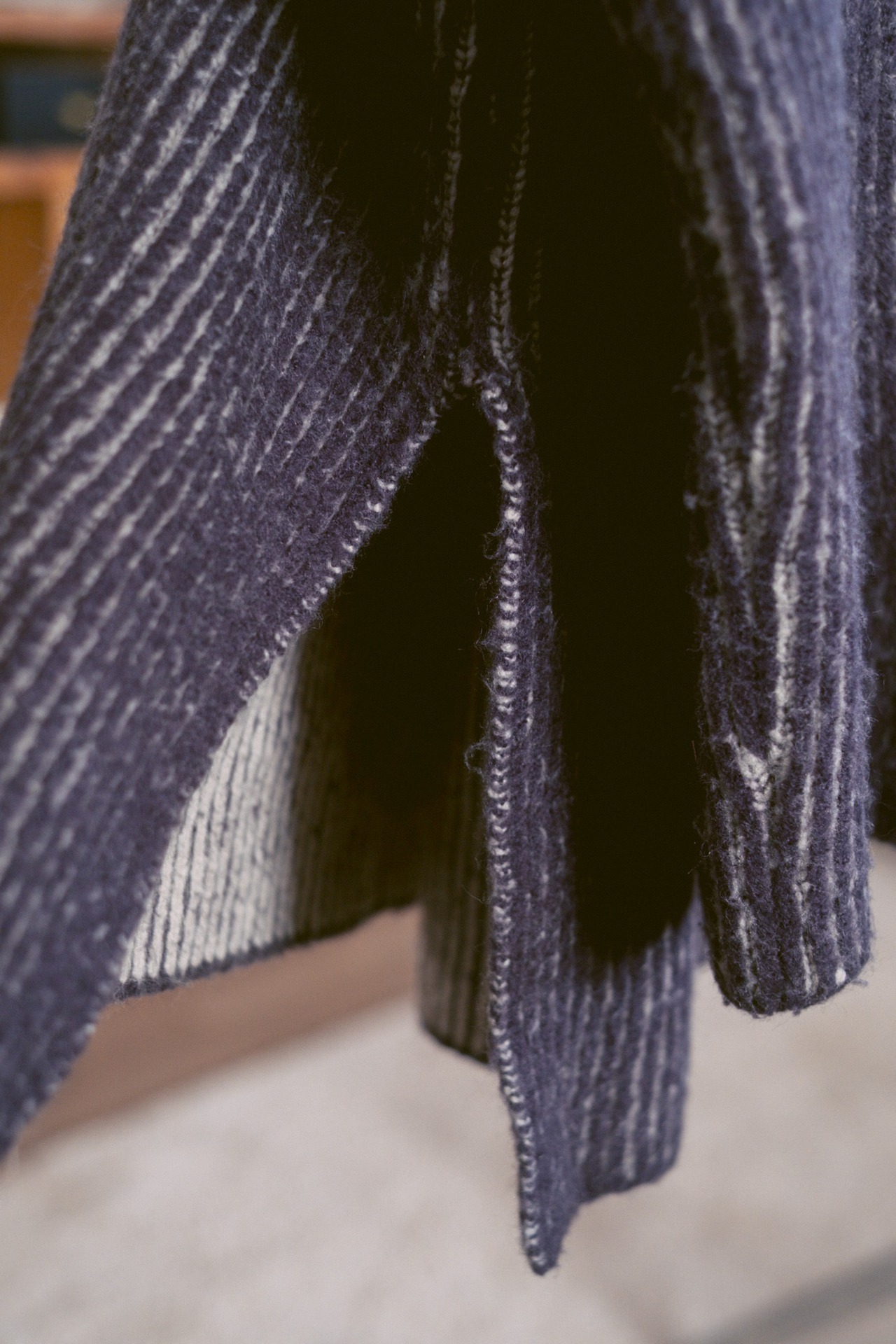 ゆったりとしたシルエットで、カラーはパープル寄りのネイビーという可愛らしくも落ち着いたニット。